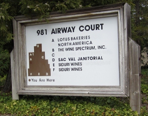Siduri Winesの入っている倉庫街の入口にある看板。EとFの欄に注目。
