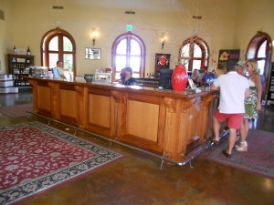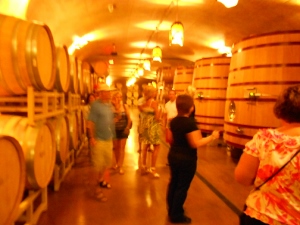テイスティングルームに入ってカウンターに近づき、ワインを試飲したいんだけどと伝えると、ちょうど今からツアーが始まるから参加するならあの人たちについて行けと言われた。見ると、テイスティングルームの一隅にある扉から、十数名の客がわらわらと出ていくところだった。ちょうど5時からのツアーらしい。
