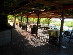 ここのピクニックエリアも素晴らしかった。葡萄畑が見渡せる高床のテラスを、木の桟でできた屋根が覆っていて、そこに蔦か何かの植物が絡まって実にイイ雰囲気。