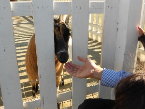 敷地内には羊などの動物が飼われているエリアもあって、柵ごしに触れ合うことができた。