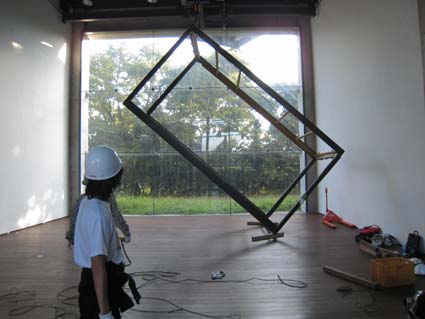 実際に45°の角度で保つM1は、見栄えも良く。地面に置かれたM1にはない、シャープさが備わったように見えました。みんな声をそろえ、「幾何学的」「美しい」と言っていました。4つのM1が45°で立つ完成を、みんな想像した日でした。