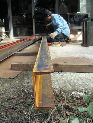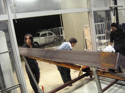 ガス溶断で切り出します。テント屋のおじさんも驚いていました。