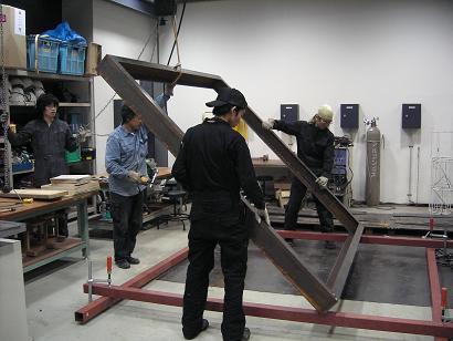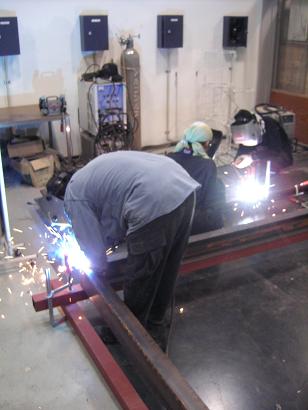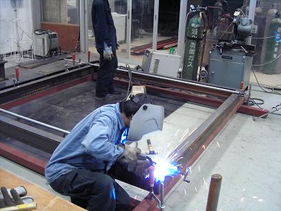 午後からは大物のステージ作り&角度金物をフラットに溶接。溶接機のフル活動!