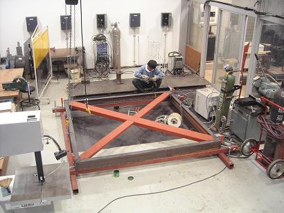 ステージ溶接完了。きれいな「X」。寸法も正確にいけました。