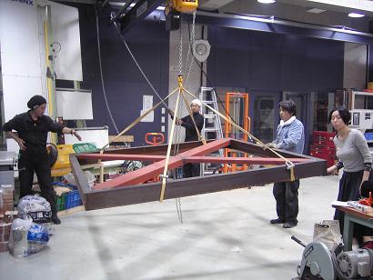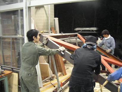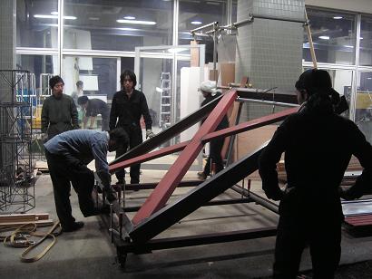 ステージの運び出しは工作室助手さん総出の作業でした。