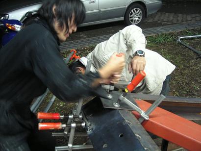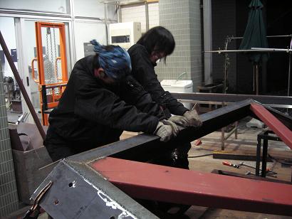 ステージ、角度金物制作班と合板床制作班と分かれて制作。