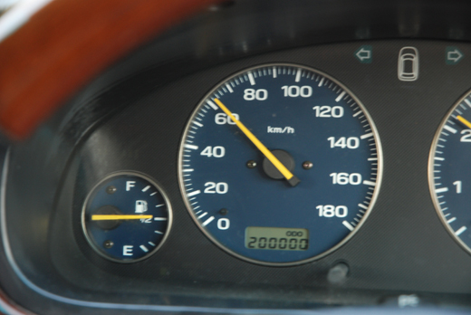 最近気になっている数字があった。Ichiroは今のところ調子が上がっていないけど、松井は連続試合安打を16まで伸ばし3割3分9厘でリーグトップ、伊達は37歳でカムバック!なんて事も最近目についているが、そんな事ではなく、ましてや芸大への大学交付金の5%削減という、クラーイ数値でもなく、実は我が愛車“SUBARUレガシーランカスター平成11年6月初年度登録”が、大きなトラブルも無く、本日無事に20万キロの大台に達したのである。上野から取手までの道すがらだった。思えば、平成11年(1999年)先端が出来て取手に来る事になったときに買い替えた車だから先端の歴史と同じ。実際、妻有のプロジェクトもワンダリングカメラプロジェクトで全国行脚したときも、撮影のときも遊びのときも、家から取手の通勤に加えていろんな所に行ったっけ。その間クラッチを2回交換したのとタイミングベルトを交換したのが大きなメンテナンスだけど、その他はノントラブルと言ってよい。さらに、カメラや貨物、そしてキャンピングのトレーラーを引っ張っていつもいつも頑張ってくれている。2005年だけはNYに滞在していたので、ほぼ一年お蔵入りしていたから8年で20万キロか。年平均25000キロってことになる。ここまでくると、車を代える気は全く無くなって、多分、次は30万キロも目指すんだろう。あと4年。