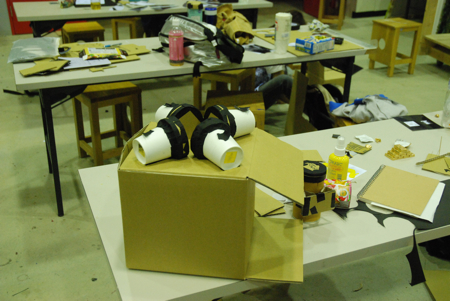 紙コップパノラマカメラ。写真には撮っていないが、この他にもスイカメラなど、それぞれユニークなカメラを作ってくれた。撮影の為のF値の事など、それぞれが違うから、むしろ共通のカメラよりも自覚的に覚えてくれたかも知れない。