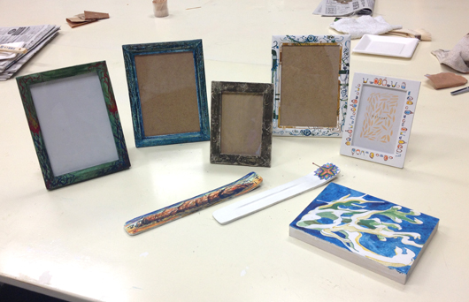 ④乾いたらワニシュやニスを塗って顔料が落ちないようにする。