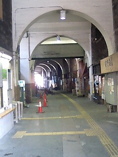 高架下にあってアーチ型になっており、なんだか趣のある駅。中は涼しい。