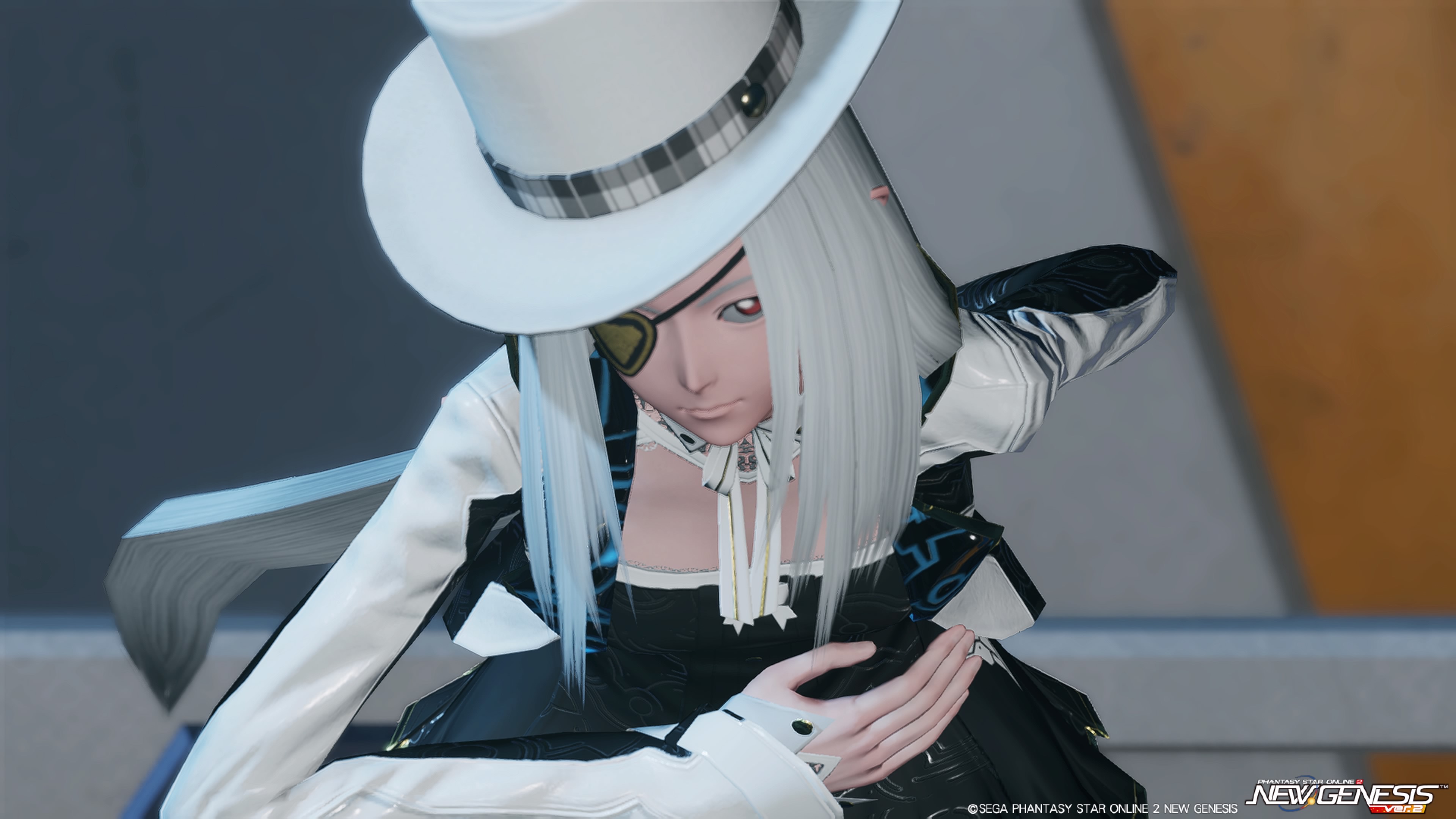 赤と白のオッドアイに白髪、尖った耳と あまり人間じみた見た目はしていない。