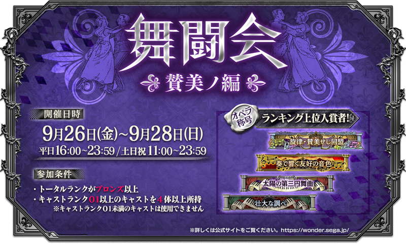 第8回舞闘会『舞闘会-第八幕-紫の鎮魂曲(レクイエム)』 2016/9/5 ~ 2016/9/11 毎日16:00 ~ 23:59 土日のみ13:00 ~ 23:59 |