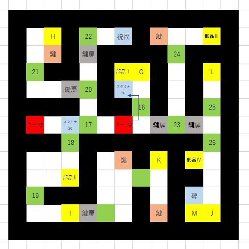 5.①23、②24、③部品Ⅲで祝福終了、鍵とって25,26倒して部品Ⅳ