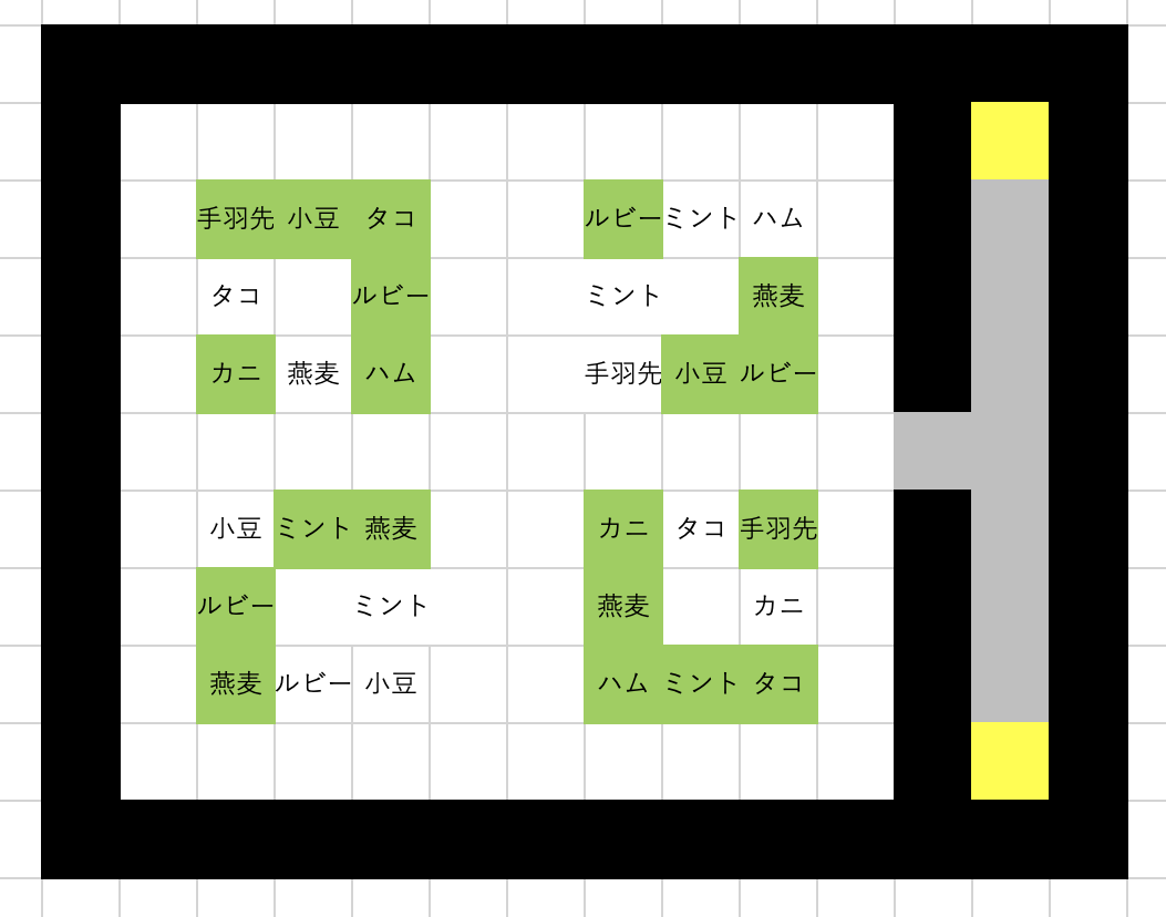 緑色の食材を出現させ、色なしの食材を消せばOK