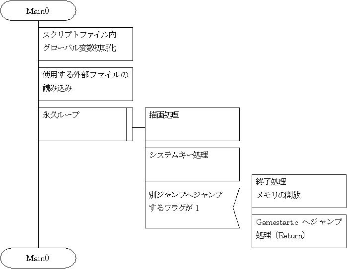 スクリプトジャンプ機能が用意されており、スクリプトから別スクリプトへ移行することが可能となっている。