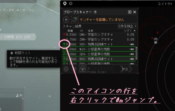 もしアノマリがその宙域にあるようだったら次の画面のように