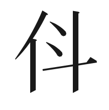 意味:字義未詳。一部の字典に掲載されている。『从』の異体字、訛字という説がある。
