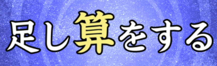 意味:【足し算】1+1など、あるかずにほかのかずをたし、ごうけいをもとめるけいさん。