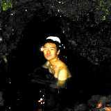 膝まで水に浸かりながら沢を遡行。30分ほどで土屋の滝に到着。思ったより豪快な滝だ。しかし目指す秘湯はこの滝より手前のはず。あてのない捜索が始まった。 土屋の湯(天然洞窟風呂) しばらくして、山の水にしては冷たくない水が壁を伝っているのを発見。よじ登ると、そこにはまさしく透明な泉がわきだす神秘的な洞窟が口を開けていた。20℃以下と冷たいが、火照った体を冷やそうと一人づつ入浴。苦労した分、満足度も高い1湯?でした。
