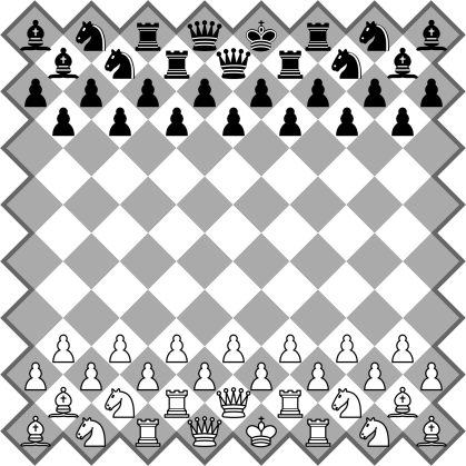 Board with diagonal grid – orthogonal and diagonal directions exchange roles