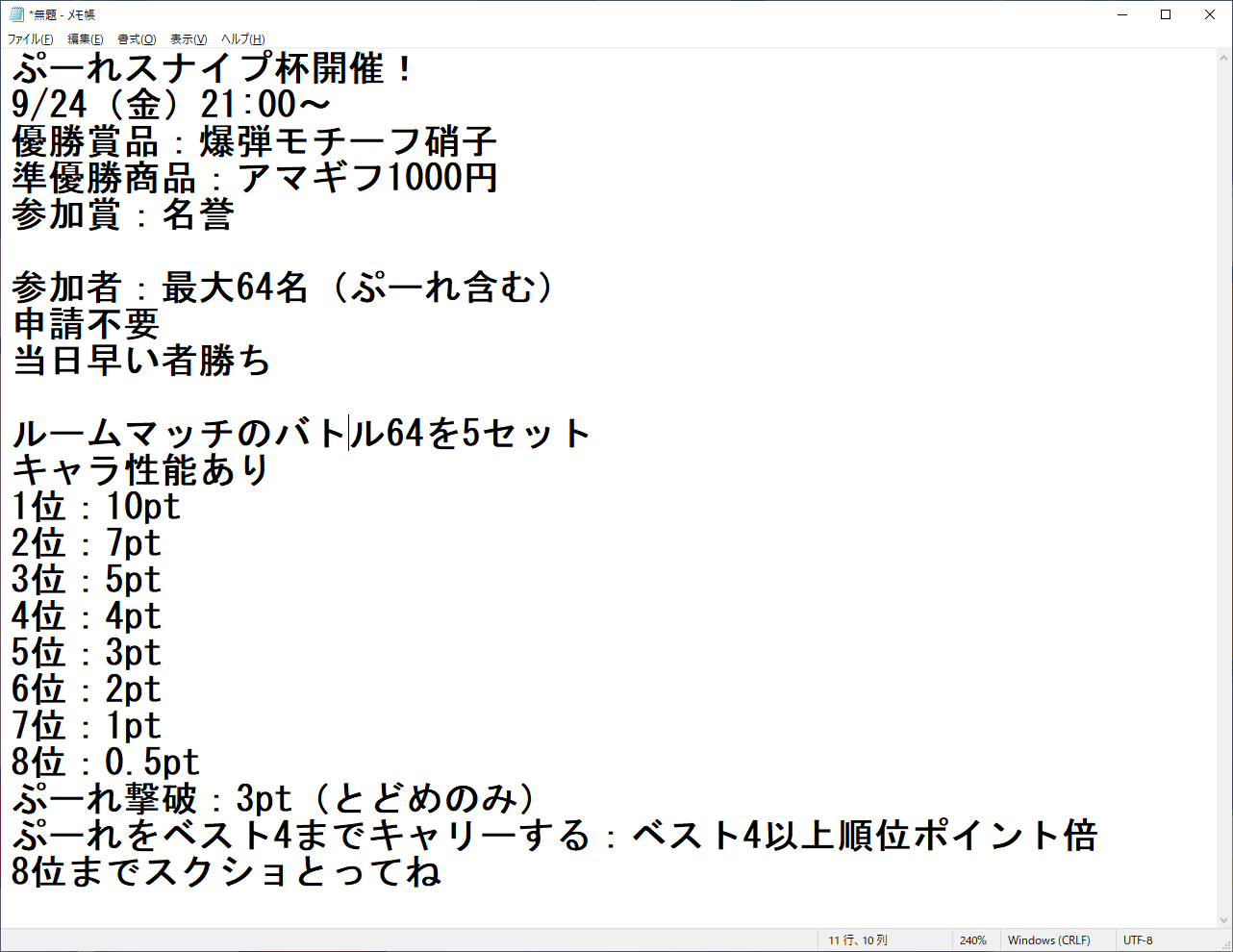 - なお戦績から分かるように、「ぷーれをベスト4までキャリーする」によるポイントの倍加は1度も発生しなかった。